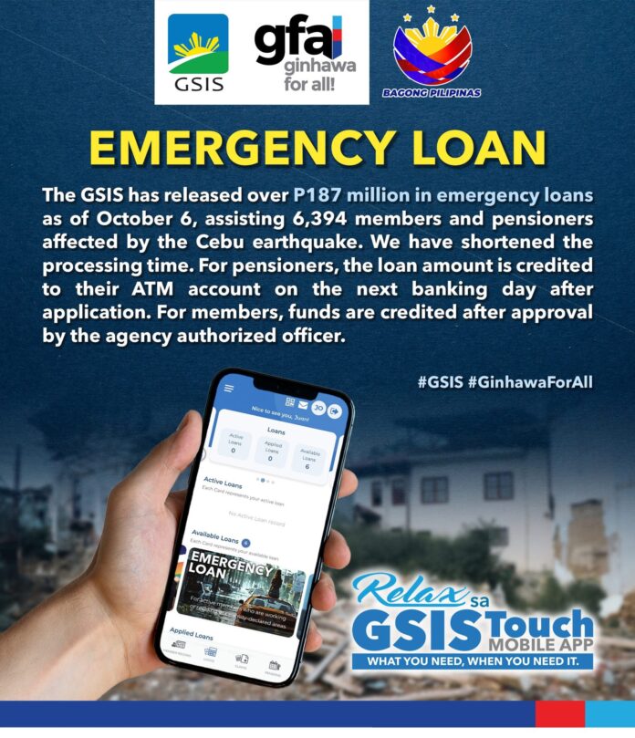 As of October 12, GSIS had released over ₱346 million in emergency loans to more than 12,000 members and pensioners in Cebu after a recent earthquake. Veloso assured similar support will be extended to other quake-hit areas once placed under a state of calamity.
