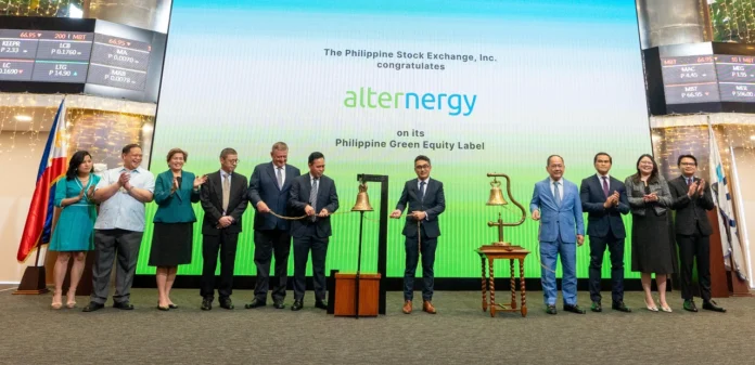 Alternergy Holdings Corp. on Friday, November 21, led the bell-ringing ceremony at the Philippine Stock Exchange (PSE) to highlight its recognition as the first publicly listed renewable energy developer to receive the Philippine Green Equity Label.