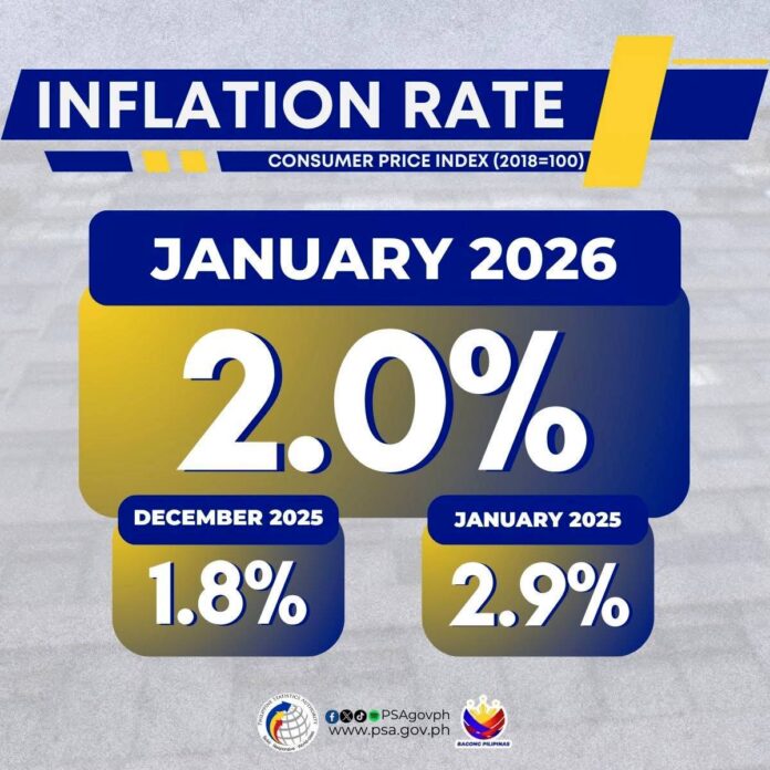 Headline inflation in the Philippines nudged higher to 2.0 percent in January, a gentle but telling start to the year. The uptick is modest but the fastest clip since January last year when the consumer price index, the country’s main inflation barometer, showed a 2.9 percent print.