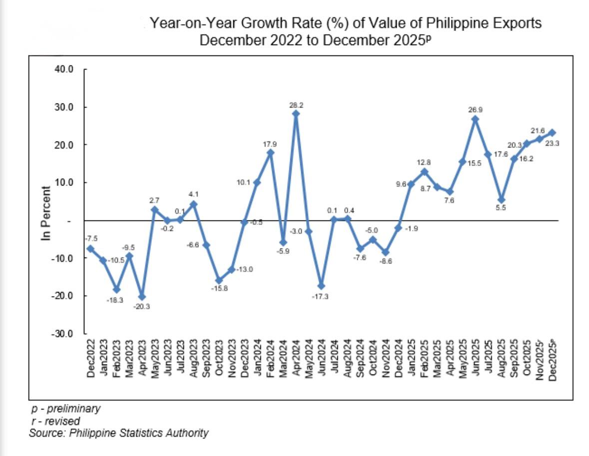 “This milestone is a testament to the competitiveness of our export manufacturers,” the agency said, pointing to sustained demand for Philippine-made products across major markets.