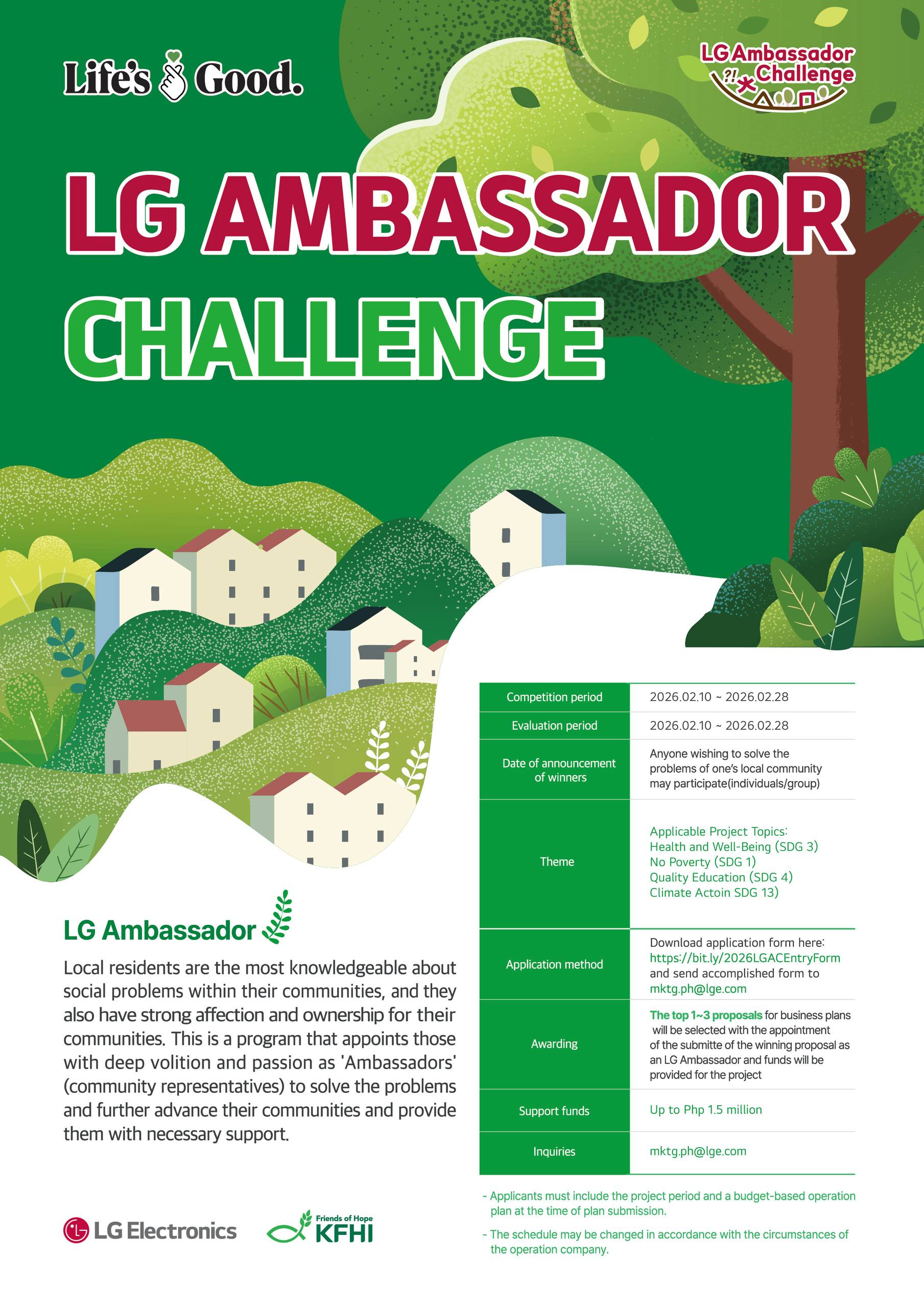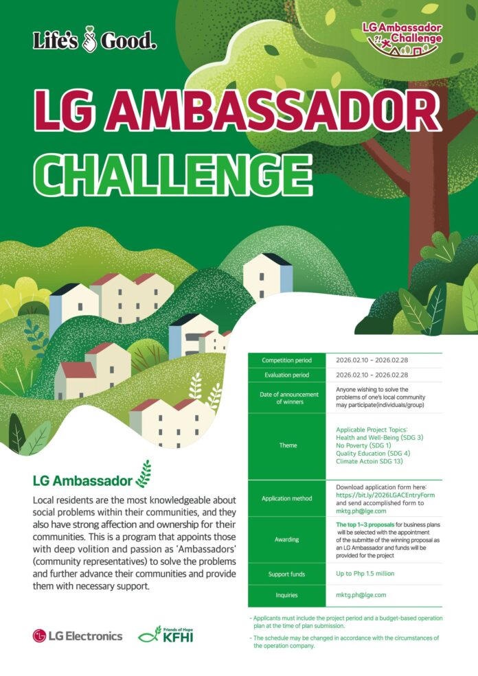 LG Electronics Philippines has opened the call for entries for the 2026 LG Ambassador Challenge, inviting changemakers, community leaders, and organizations nationwide to submit project proposals that will benefit a new underserved community, with a strong focus on medical aid and community healthcare.