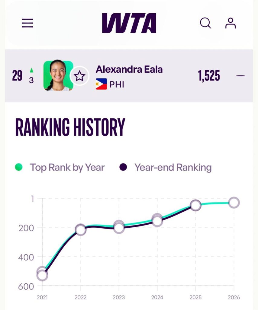 Two wins were enough to lift Eala to the highest ranking ever reached by the young Filipina, further cementing her status as Southeast Asia’s brightest tennis prospect.