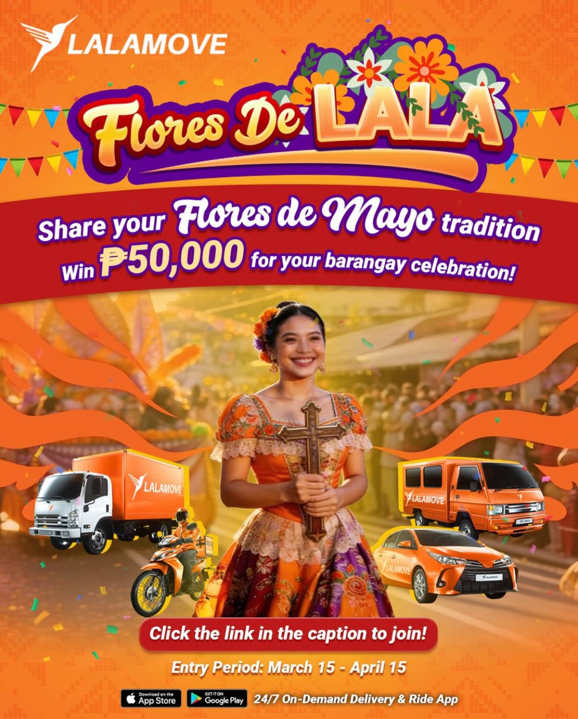 To qualify, applicants must be Lalamove users in Luzon who have completed at least one Lalamove order in the past six months. They also need to submit a registration form, a Lalamove email and mobile number, and a signed endorsement from their Parish Priest or Barangay Captain. Entries must include a 50–100 word description of what makes their barangay’s Flores de Mayo celebration unique.