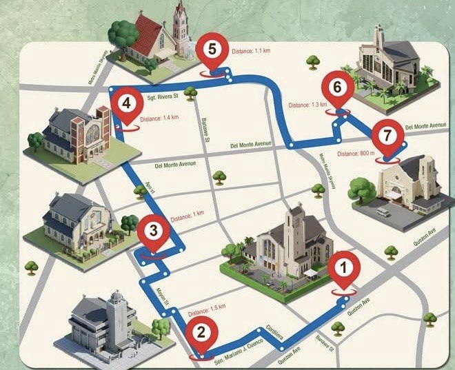 The 7.1-kilometer route, which can be completed in about one hour and 38 minutes, connects several churches across the city.